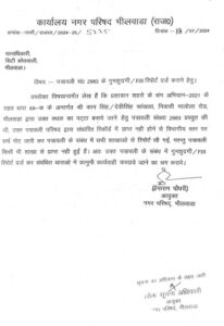 जिससे स्पृष्ठ होता है कि नगर परिषद भीलवाडा जो कि अपने आप में भ्रष्टाचार में विख्यात थी लेकिन अब नगर निगम बन कर क्या विश्व में भी विख्यात हो जाएगी जब एक अधिकारी सिर्फ और सिर्फ पत्र लिखकर अपने किये कृत्यों को छिपाने कि भरपूर प्रयास करते हुए आम जनता को अपनी निजी पूर्ति हेतु कागजो में भी दूर्षित कागज बनाकर गुमराह कर सकता हैं। तो कार्यकाल के अंदर हमसलाह एकराय होकर कितने बडे – बडे कार्यो  को अनजाम दिया होगा कितना बडा राजकोष का नुकसान किया होगा बहुत बडा जांच का विषय हैं कौन – कौन इसमें सलिप्त हैं क्या अपने आप को बचाने के लिए किसी निचले व्यक्ति को मोहरा बनाकर निशाना बनाया जाएगा या कि गई दूर्षित पत्रो का कोई दूसरी गली निकाल ली जाएगी क्या इनी अदृश्य कार्यो के चलते आयुक्त नगर निगम कार्यालय के बजाए अपने चहेतो व सफेदपोशो, राजनीति संरक्षण प्राप्त व्यक्तियो, बलशाली व्यक्तियों कि पत्रावलियों का निस्तारण घर पर बैठकर करने में ज्यादा विश्वास करते है साथ ही अपूष्ठ सूत्रों से मिली अहम जानकारी के अनुसार आज कल निगम मे मेहता व पतला डूबला काला व्यक्ति निगम के हर कार्य कराने में सक्षम कह जा रहे हैं।