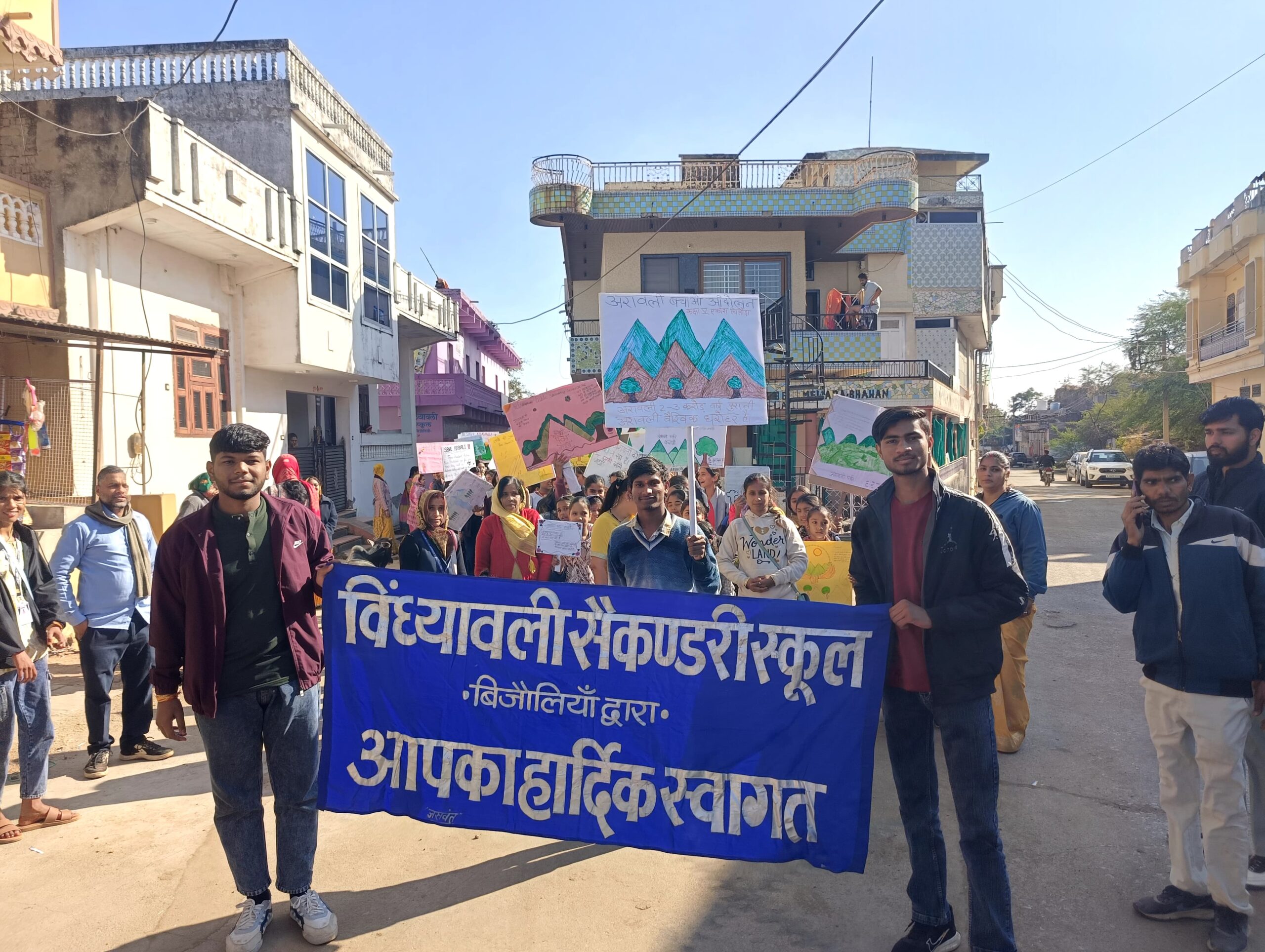 बिजौलिया, बलवंत जैन। कस्बे के विंध्यावली सेकेंडरी स्कूल के छात्र-छात्राओं ने अरावली पर्वतमाला के संरक्षण और पर्यावरण बचाने का संदेश देने के उद्देश्य से अरावली बचाओ अभियान के अंतर्गत जागरूकता रैली का आयोजन किया। रैली विद्यालय परिसर से प्रारंभ होकर कस्बे के प्रमुख मार्गो से होती हुई निकाली गई।